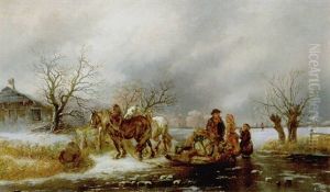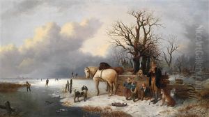 Winter Scene With Figures And Frozen River