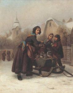 Wood Gatherers And A Sledge In A Winter Landscape