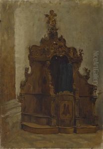 Interior With A Kitchenmaid And Three Gentlemen Drinking Beer