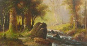 Figures In A Punt In A Wooded River Landscape