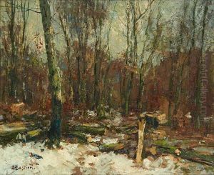Ramasseur De Bois Dans La Foret Sous La Neige