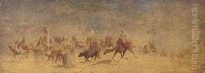La Chasse Au Faucon (orientaliste) Oil Painting by Alfred Bastien