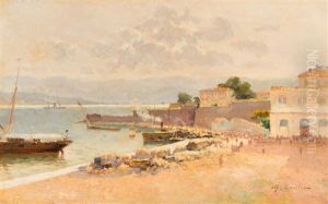 Maisons Sur Le Quai Anime De Voiliers Et Personnages