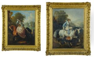 An Elegant Lady On A Chesnut Horse In A Wooded Copse (+ An Elegant Lady On A Dapple-grey Horse In A Park; Pair)