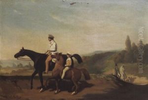 A Hunting Party By A Lake (+ Riders On A Forest Path; Pair)