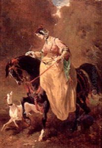 Lady Riding Side-saddle On A Horse And Spaniels In Landscape