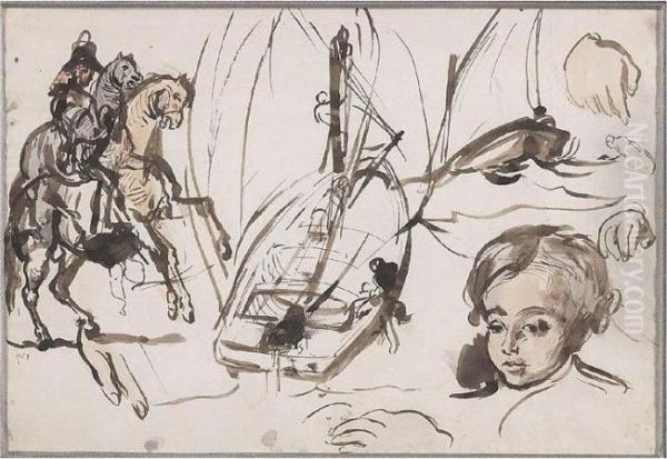 Etudes: Portrait D'edmond, Fils De L'artiste; Etudes De Bateau Et Cavalier