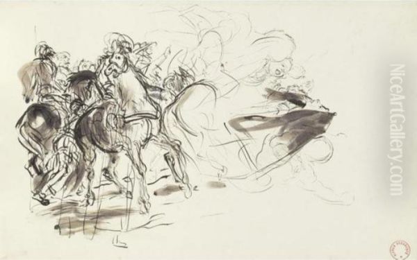 Femme Au Tambourin, Etude D'animaux Et De Chevaux