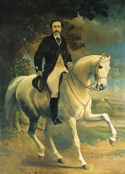 Bring the timeless beauty of Alfred F. De Prades's Equestrian Portrait of Henry Robert Clifton, on a grey horse, in a landscape, with Clifton Castle, Nottinghamshire, beyond into your home with a handmade oil painting reproduction. Carefully recreated on canvas by skilled artists using traditional techniques, this piece captures the delicate brushwork, subtle light, and vibrant color of the original masterpiece. With museum-level quality and rich texture, it brings elegance and artistic depth to any space. Enjoy free shipping and make this masterpiece a part of your personal collection.