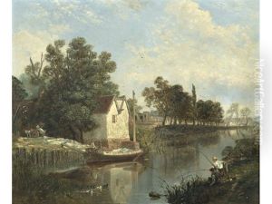 Figures Beside The River Dee With Extensivelandscape Beyond