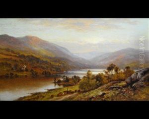 A Mountainous River Landscape With Sheep