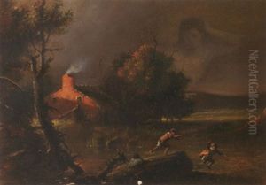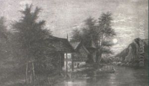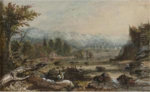 A Canoe And Figure In A Mountain Landscape