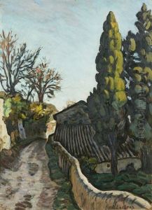 Paysage Aux Cypres, Fleurs Et Chartreuse
