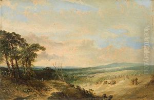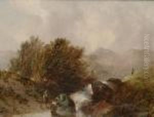 A Forest Landscape With Figures In A Wagon