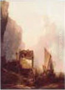 Lakelandscape With Barge Before A Castle Ruin