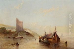 A Hay Barge And Other Vessels At A Riverside Town