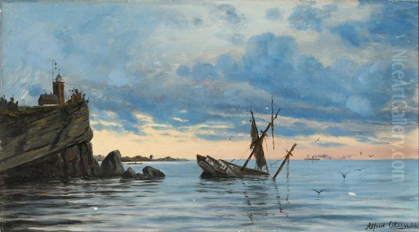 Bring the timeless beauty of Alfred Olsen's Et grundstodt skib ud for et fyrtarn pa en klippekyst into your home with a handmade oil painting reproduction. Carefully recreated on canvas by skilled artists using traditional techniques, this piece captures the delicate brushwork, subtle light, and vibrant color of the original masterpiece. With museum-level quality and rich texture, it brings elegance and artistic depth to any space. Enjoy free shipping and make this masterpiece a part of your personal collection.