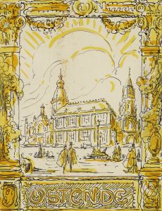 Ingang Van De Antwerpse Zoo. Pentekening In Oost-indische Inkt, Gehoogd Met Aquarel, Lichte Toets Van Gouache. In Kader
