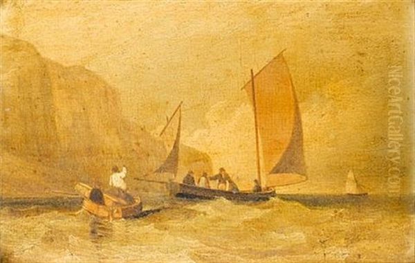 A Lugger With Passengers Inshore Below Cliffs