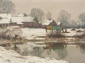 Winterlandschaft: Dorf Am Flusufer