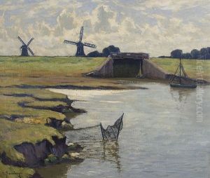 Polderlandschaft Mit Windmuhlen