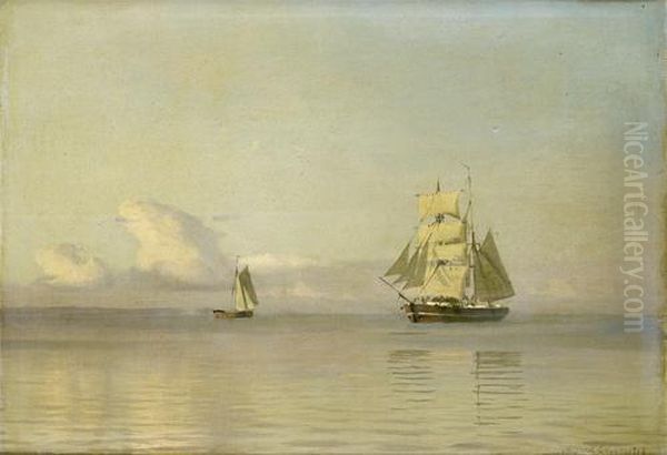 A Brigantine Almost Becalmed In A Faint Breeze