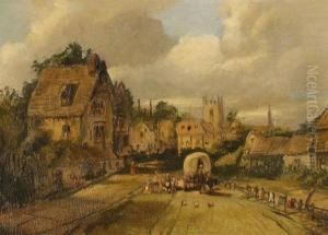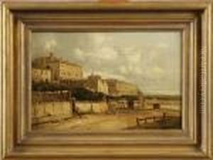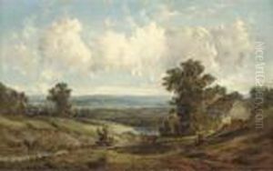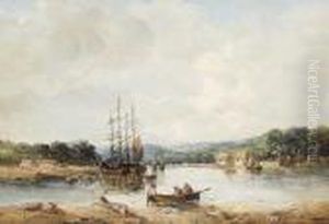 Figures Before A Cottage, A Paddlesteamer On The River Beyond