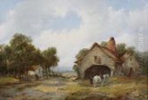 A Rural Landscape With Cattle And Sheep Grazing By Barns