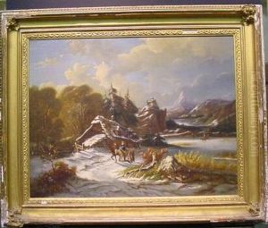 Die Heimkehr Vom Markt. Winterlandschaft Mit Pferdefuhrwerken Und Vom Markt Heimkehrender Bauerin.