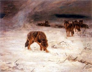 Wolves during blizzard