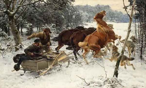 Bring the timeless beauty of Alfred Wierusz-Kowalski's Attack of Wolves into your home with a handmade oil painting reproduction. Carefully recreated on canvas by skilled artists using traditional techniques, this piece captures the delicate brushwork, subtle light, and vibrant color of the original masterpiece. With museum-level quality and rich texture, it brings elegance and artistic depth to any space. Enjoy free shipping and make this masterpiece a part of your personal collection.