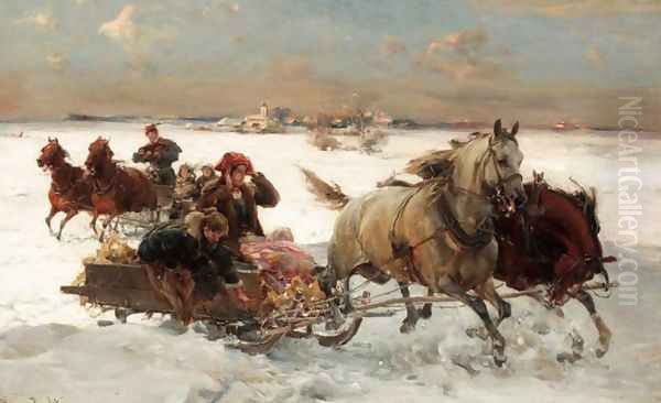 Bring the timeless beauty of Alfred Wierusz-Kowalski's Sleigh Ride into your home with a handmade oil painting reproduction. Carefully recreated on canvas by skilled artists using traditional techniques, this piece captures the delicate brushwork, subtle light, and vibrant color of the original masterpiece. With museum-level quality and rich texture, it brings elegance and artistic depth to any space. Enjoy free shipping and make this masterpiece a part of your personal collection.