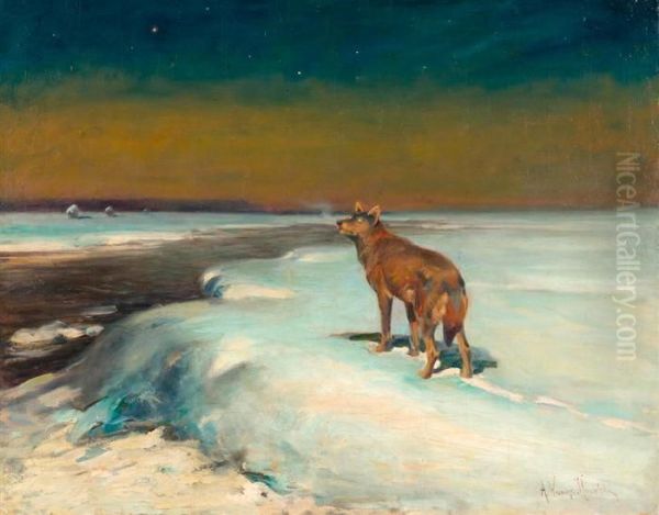 Bring the timeless beauty of Alfred Wierusz-Kowalski's Winter Landscape With A Wolf. into your home with a handmade oil painting reproduction. Carefully recreated on canvas by skilled artists using traditional techniques, this piece captures the delicate brushwork, subtle light, and vibrant color of the original masterpiece. With museum-level quality and rich texture, it brings elegance and artistic depth to any space. Enjoy free shipping and make this masterpiece a part of your personal collection.