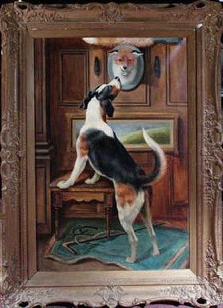 T We Met Before?" - A Hound Inspecting A Wall-mounted Fox-mask