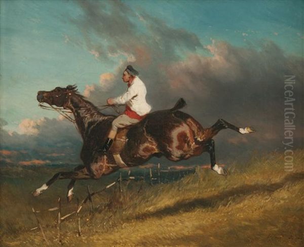 L'envolee Sur L'obstacle Oil Painting by Alfred De Dreux