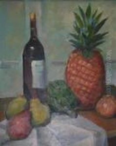 Fruchtestilleben Mit Orangen, Ananas, Flox Und Chianti-flasche