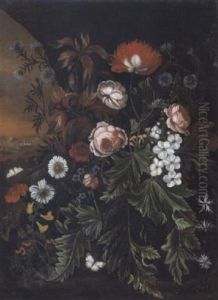 Alida Withoos was a Dutch painter born in Amersfoort in 1661, during a period when the Dutch Golden Age was at its peak, showcasing tremendous advancements in art, science, and trade. She was one of the four children of the painter Matthias Withoos and Wendelina van Hoorn, who were instrumental in nurturing her artistic talents from a young age. Her father, a well-regarded painter of landscapes and still lifes, was her first and most influential teacher, instilling in Alida a profound understanding of botanical and naturalistic detail that would come to define her work.