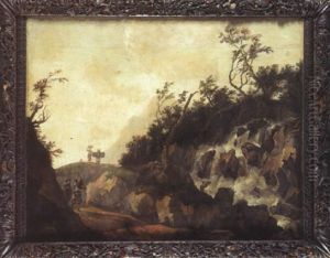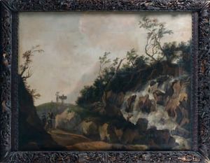Wasserfall Mit Burgen Und Figurenstaffage