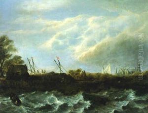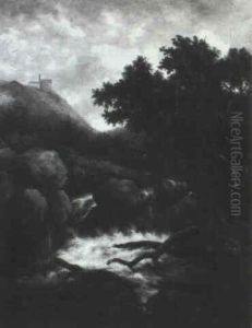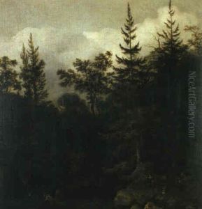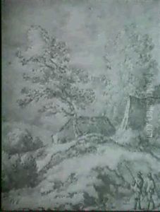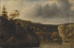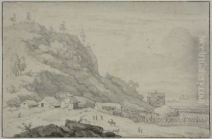 A Norwegian Landscape With A Cottage And Peasants Resting On The Bank