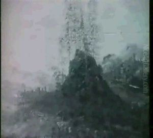 A Rocky Landscape With Goats And Travellers Near A Castle