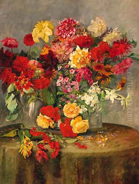 Bring the timeless beauty of Alois Schonn's Summer flowers on a table into your home with a handmade oil painting reproduction. Carefully recreated on canvas by skilled artists using traditional techniques, this piece captures the delicate brushwork, subtle light, and vibrant color of the original masterpiece. With museum-level quality and rich texture, it brings elegance and artistic depth to any space. Enjoy free shipping and make this masterpiece a part of your personal collection.