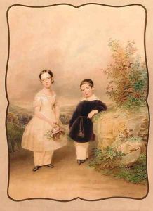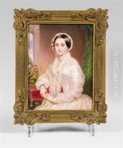Bildnis Eines Madchens In Weisem Kleid, Auf Einem Roten Polstermobel Sitzend Vor Wolkenhintergrund