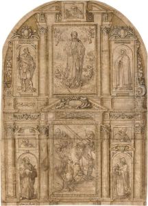 Design For An Elaborate Altarpiece With A Central Panel