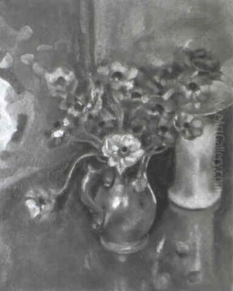 Blumenstilleben Mit Zinnkanne Und Porzellanvase