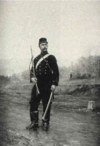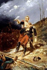 Officers On Horseback Amid A Battlefield Scene
