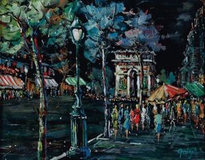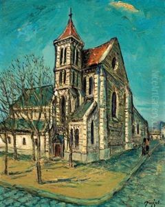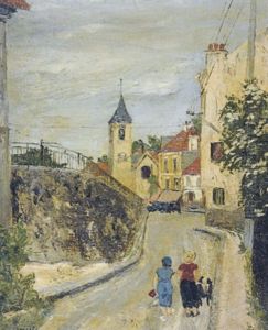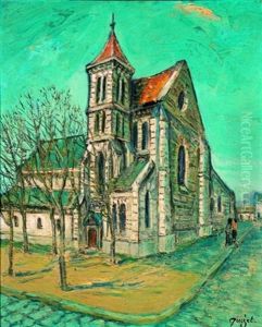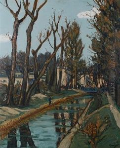 Rameurs Sur La Riviere Devant L'eglise Du Village