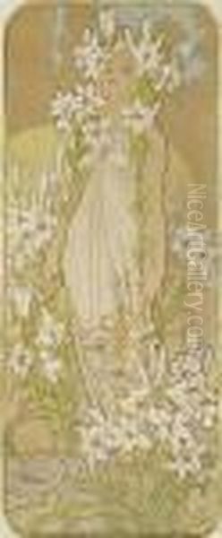 Lily Oil Painting by Alphonse Maria Mucha