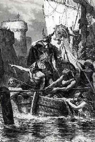Norse Boats besieging Paris from LHistoire de France racontee a mes petits-enfants by Francois Guizot 1787-1874 and finished by Guizot daughter