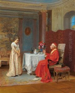 Bring the timeless beauty of Alphonse Neumans Of Scarborough's A Lady Serving Tea To A Gentleman In An Interior into your home with a handmade oil painting reproduction. Carefully recreated on canvas by skilled artists using traditional techniques, this piece captures the delicate brushwork, subtle light, and vibrant color of the original masterpiece. With museum-level quality and rich texture, it brings elegance and artistic depth to any space. Enjoy free shipping and make this masterpiece a part of your personal collection.