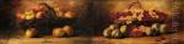 Paire De Natures Mortes Aux Pommes Et Aux Groseilles